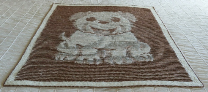 The blanket was made in DK yarn and measures approximately approximately 80 cm x 100 cm (32” x 40”). It can be made in any yarn though this might change the overall size. The instructions are very easy to follow, using a method of charting that we have devised ourselves. It is knitted in the same way as knitting stripes, using only knit and purl stitches.